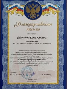 заведующей кафедры струнных инструментов, профессора Петрозаводской
