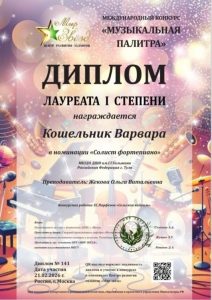 Поздравляем ученицу нашей школы Кошельник Варвару,