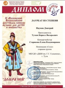 Поздравляем обучающегося нашей школы Соломатина Дмитрия.