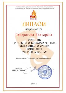 Панкратова Екатерина — Диплом участника