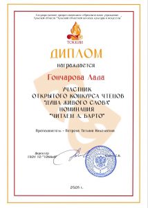 Гончарова Лада — Диплом участника