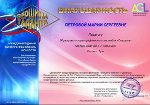 Международном конкурсе-фестивале искусств «Вершина таланта»,