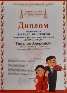 Поздравляем обучающегося нашей школы Топалова Александра,