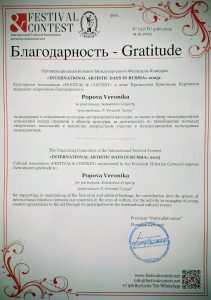 на Международном фестивале-конкурсе “International artisic days»,