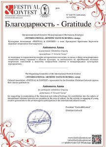 на Международном фестивале-конкурсе “International artisic days»,