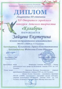 XII городском открытом конкурсе детского творчества «Колибри»,