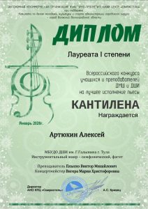 Поздравляем обучающегося нашей школы Артюхина Алексея, получившего