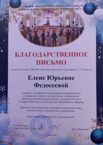 выступившую на праздничном мероприятии «Детский Рождественский бал»,